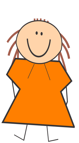 This features a happy cartoon character, possibly a woman or a girl, wearing an orange dress. She is standing with her arms at her sides and has a smile on her face. Her hair is styled in braids, adding to the cheerful appearance of the character. The overall atmosphere of the image is light-hearted and joyful, as the cartoon figure seems to be enjoying herself.