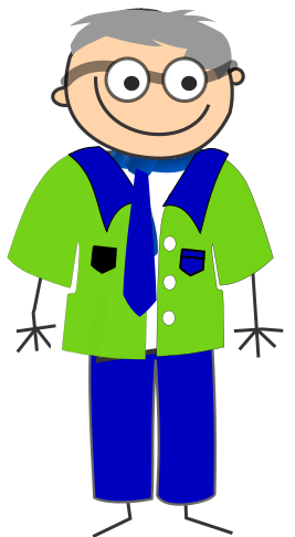 This features a cartoon drawing of an older man wearing a green shirt and tie. He is smiling, giving the impression that he is happy or enjoying himself. The man's attire includes a suit jacket, which adds to his formal appearance. Additionally, there are two pockets visible on the front of the shirt, one on each side. The overall scene appears to be light-hearted and amusing, as it portrays an older gentleman in a playful manner.