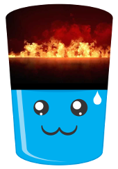 This features a blue cup with a sad face drawn on it. The cup is filled with water, and the face appears to be crying. The background of the image has an orange glow, giving the scene a warm atmosphere. The cup itself occupies most of the frame, while the background takes up the rest of the space.