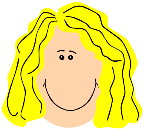 This features a woman with blonde hair, wearing a smile on her face. She has a yellowish-blond color to her hair and appears to be the main focus of the picture. Her eyes are closed as she smiles, giving off a warm and friendly vibe. The drawing style is simple yet effective in capturing the woman's expression and overall appearance.