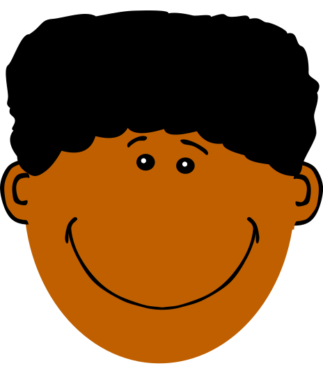 This features a smiling cartoon face with big eyes and a brown complexion. The face is drawn in black, white, and red colors, giving it a vibrant appearance. The mouth of the character is open, showing teeth and creating an inviting smile. The eyes are large and round, adding to the friendly expression of the face. This cartoon drawing could be used for various purposes such as advertising or entertainment.
