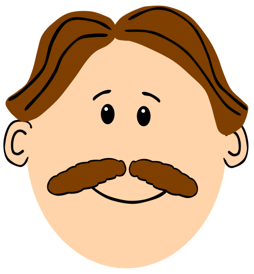 This features a cartoon drawing of a man with a mustache and brown hair. He is smiling, giving the impression that he is happy or enjoying himself. His facial hair appears to be well-groomed, adding to his overall appearance. The man's hair has black lines on it, which adds an interesting detail to the drawing. Overall, this cartoon image captures a cheerful and friendly atmosphere with its depiction of a happy man.