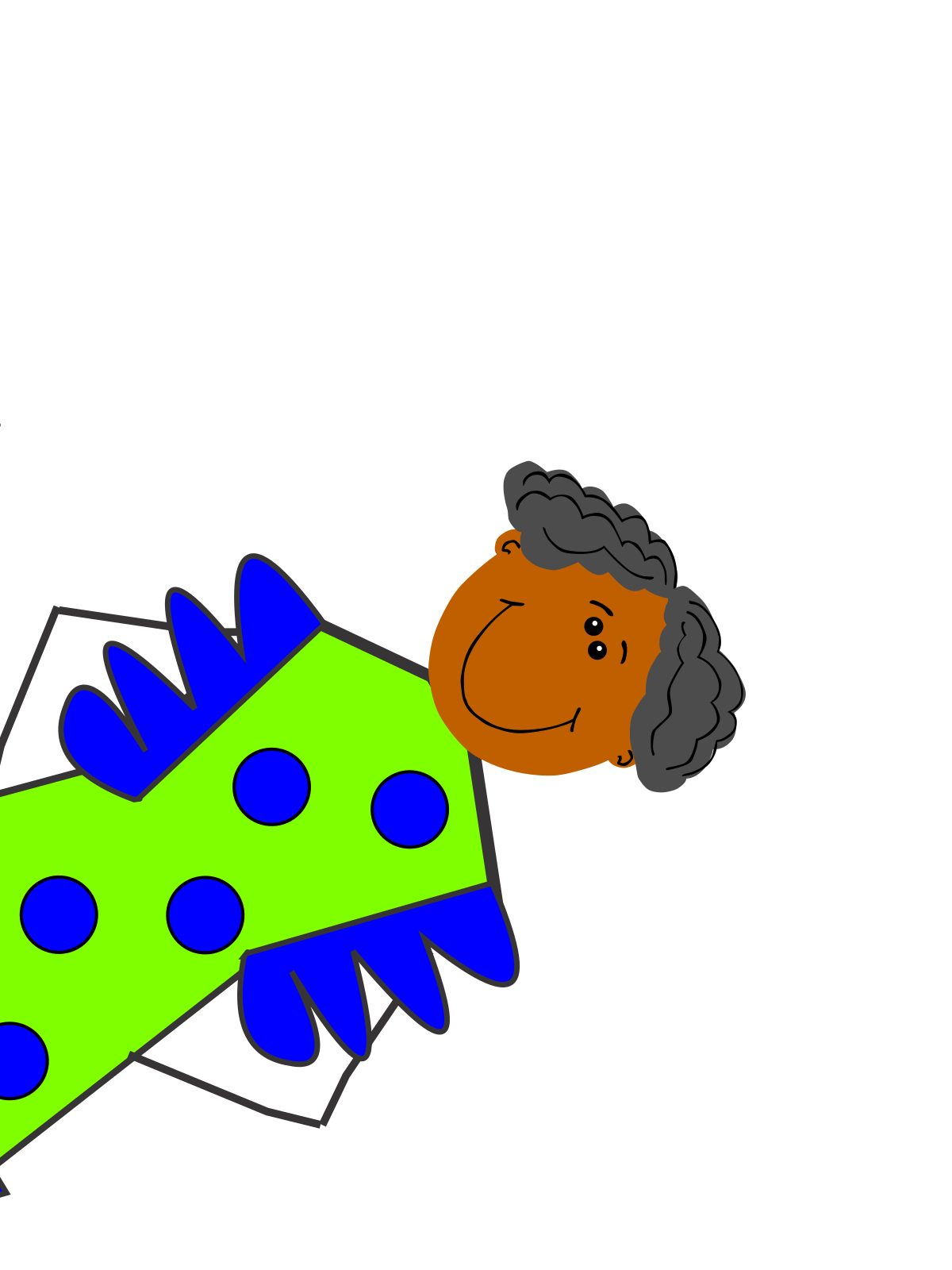This features a cartoon drawing of an older woman with dark skin and short grey hair. She is lying down on her side, possibly resting or relaxing. The drawing has a colorful appearance, with the woman's clothing featuring blue polka dots. The overall scene appears to be a playful and whimsical representation of an elderly individual in a comfortable position.