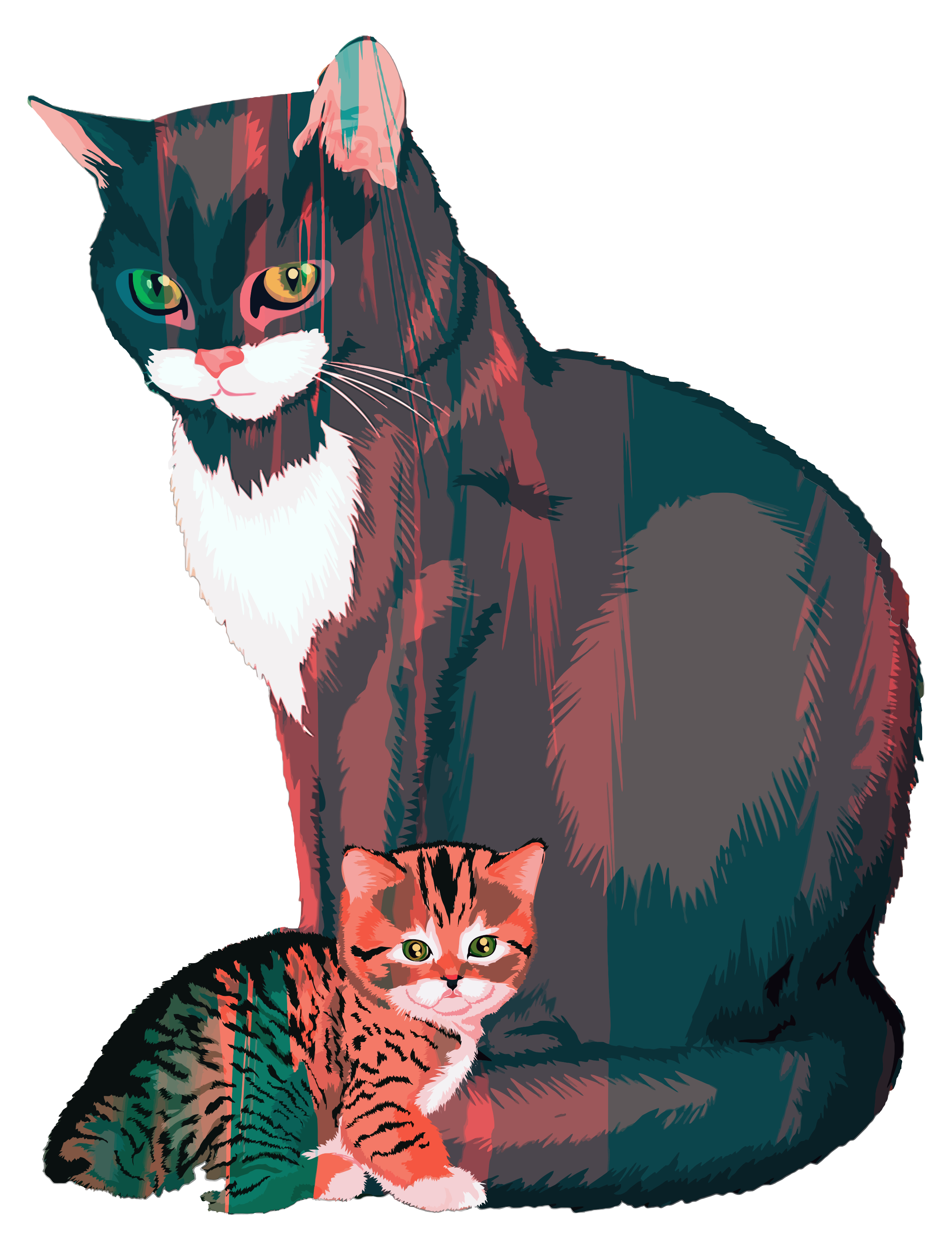 This is a completely free image Mama Cat and Baby Cat that you can download, post, and use for any purpose.
