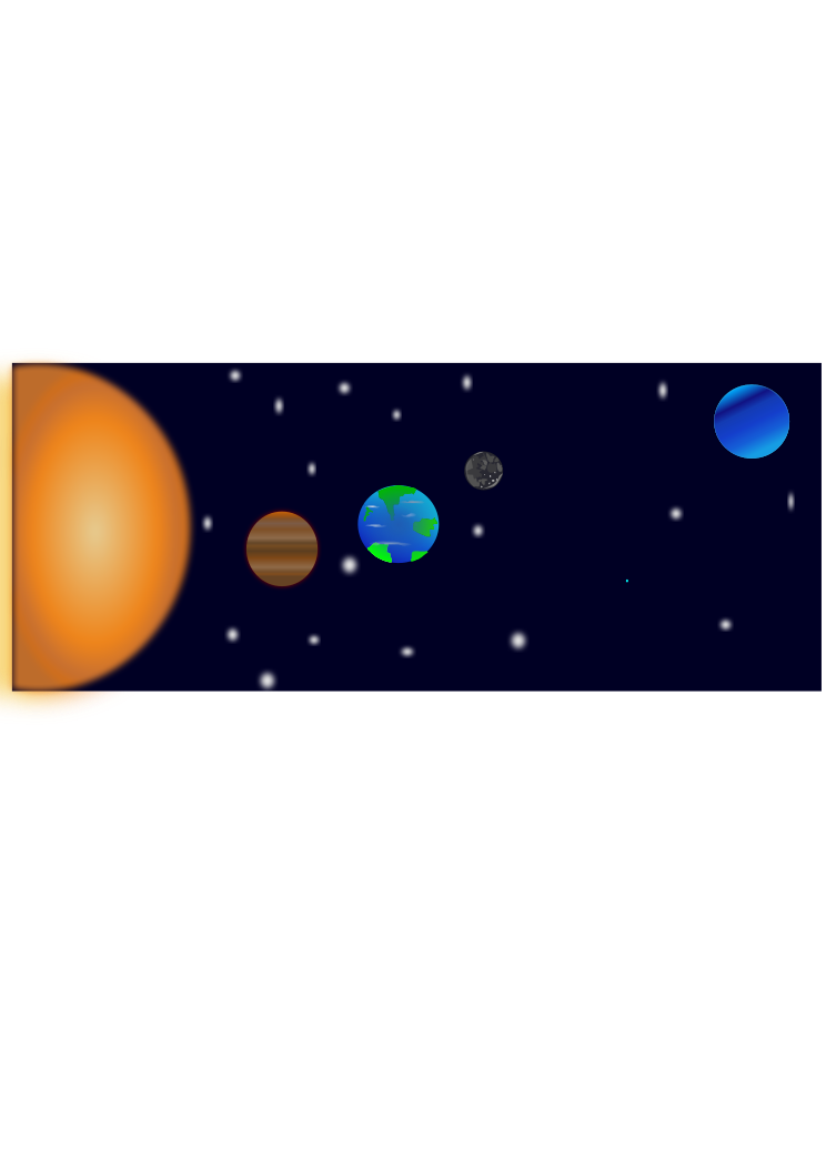 This features a space illustration with three planets, Venus, Earth, and Neptune, positioned in the sky. Each planet is accompanied by its corresponding star, creating an interesting visual representation of our solar system. The sun is depicted as yellow, adding to the overall colorfulness of the scene. In addition to the main celestial bodies, there are numerous stars scattered throughout the image, further emphasizing the vastness and beauty of space.