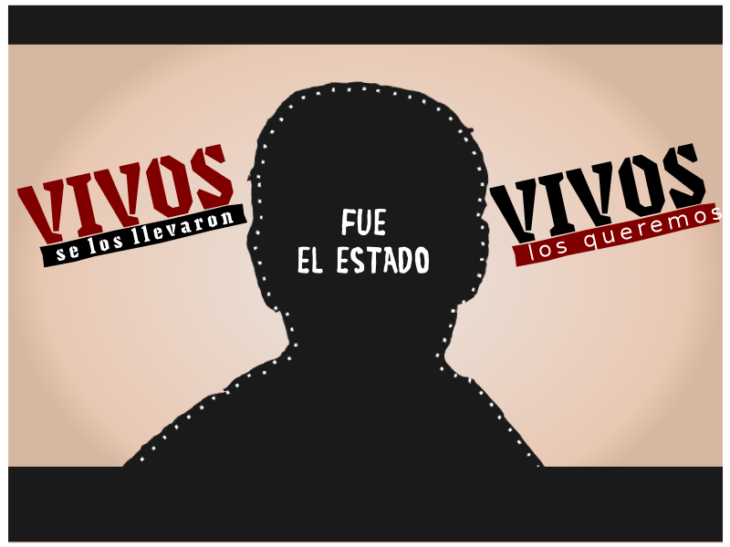 This features a poster with the words "Vivos" and "Fue el Estado" written on it. Above these words, there is an illustration of a man's head, which appears to be in silhouette. The poster seems to be related to a political or social issue, possibly concerning the disappearance of 43 students in Ayotzinapa, Guerrero. The poster has been created for use with various motives and is available for free download.