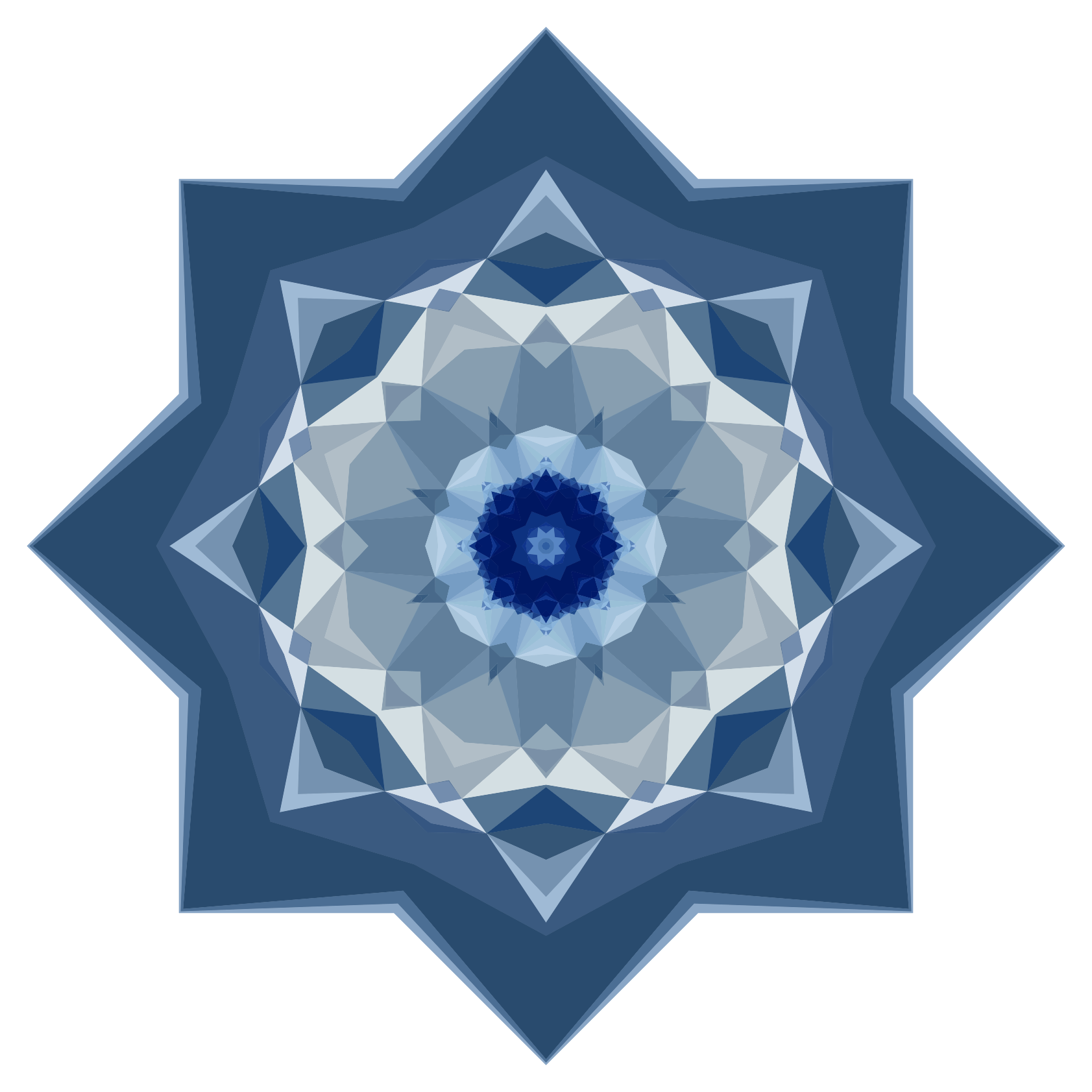 This features a blue and white geometric design, which appears to be an abstract representation of a flower. The design is composed of multiple overlapping circles, each varying in size and position. These circles are arranged in such a way that they create a visually appealing pattern, resembling the petals of a flower. The overall effect is a harmonious blend of colors and shapes, creating an intriguing and captivating visual experience.