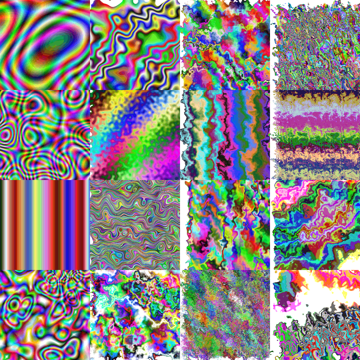 This is a collage of six different pictures, each featuring a unique and colorful pattern. These patterns are reminiscent of the famous psychedelic filter packs that were popular in the 1960s and 70s. Each picture showcases various shades of rainbow colors, creating an eye-catching and vibrant display. The images appear to be distorted or filtered, giving them a distinctive and artistic appearance. Overall, this collage is a visually striking representation of the iconic psychedelic filter packs.