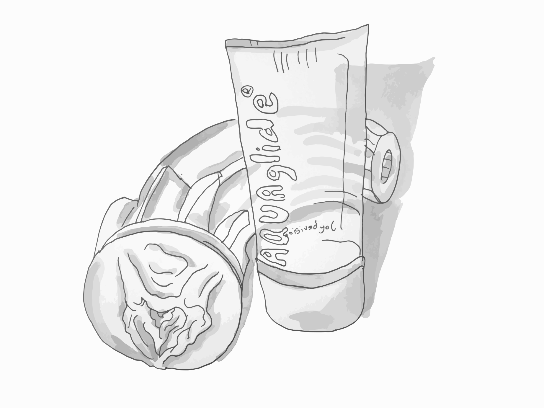 This features a close-up of two objects, one being a tube of lip balm and the other being a pair of earphones. The lip balm is placed on top of the earphones, creating an interesting juxtaposition between these two everyday items. The drawing style gives it a handmade or artistic appearance, adding to the overall visual appeal of the image.