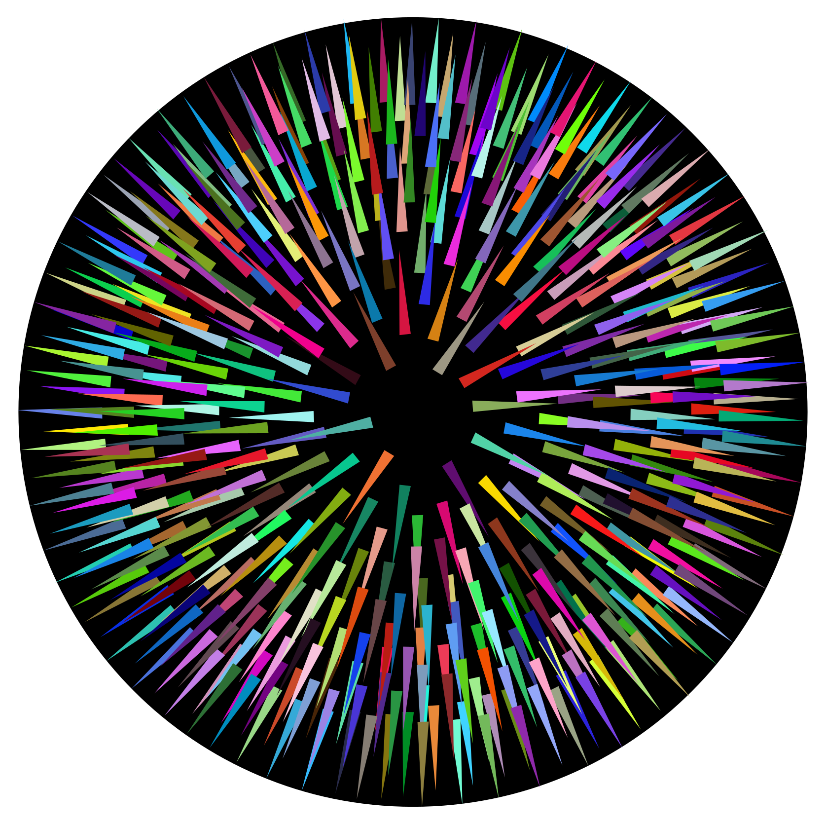 This features a large, colorful circle with many different colored spikes protruding from it. These spikes are arranged in various patterns and directions, creating an intricate and visually appealing design. The colors of the spikes are vibrant and diverse, adding to the overall beauty of the piece. The circular shape of the artwork gives it a sense of depth and balance, making it an interesting focal point for any space where it is displayed.