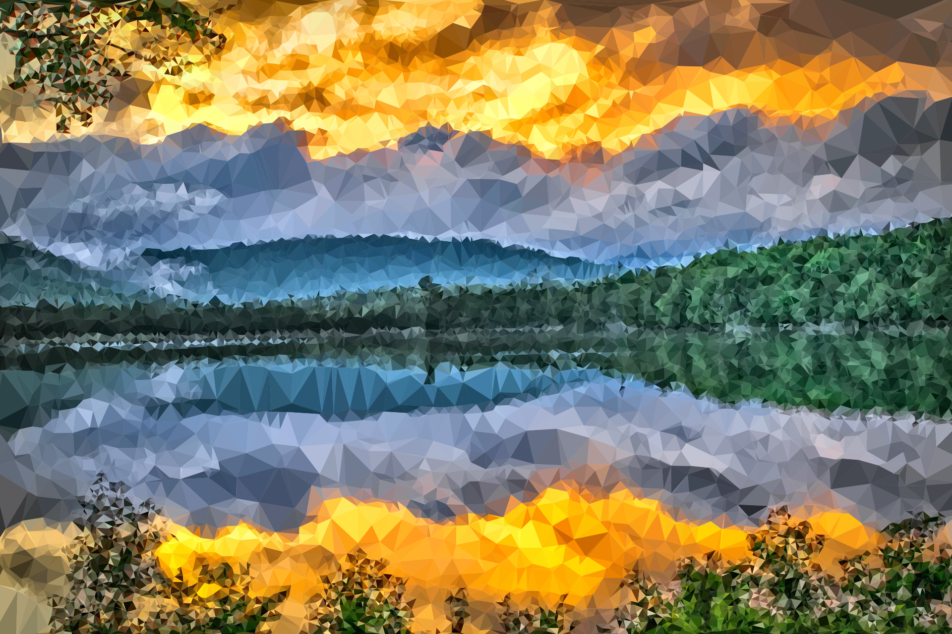 Tags: abstract, art, forest, geometric, lake, landscape, low poly, mountain, nature, polygon, reflection, source pixabay, sunrise, triangle, water, reflection sunset