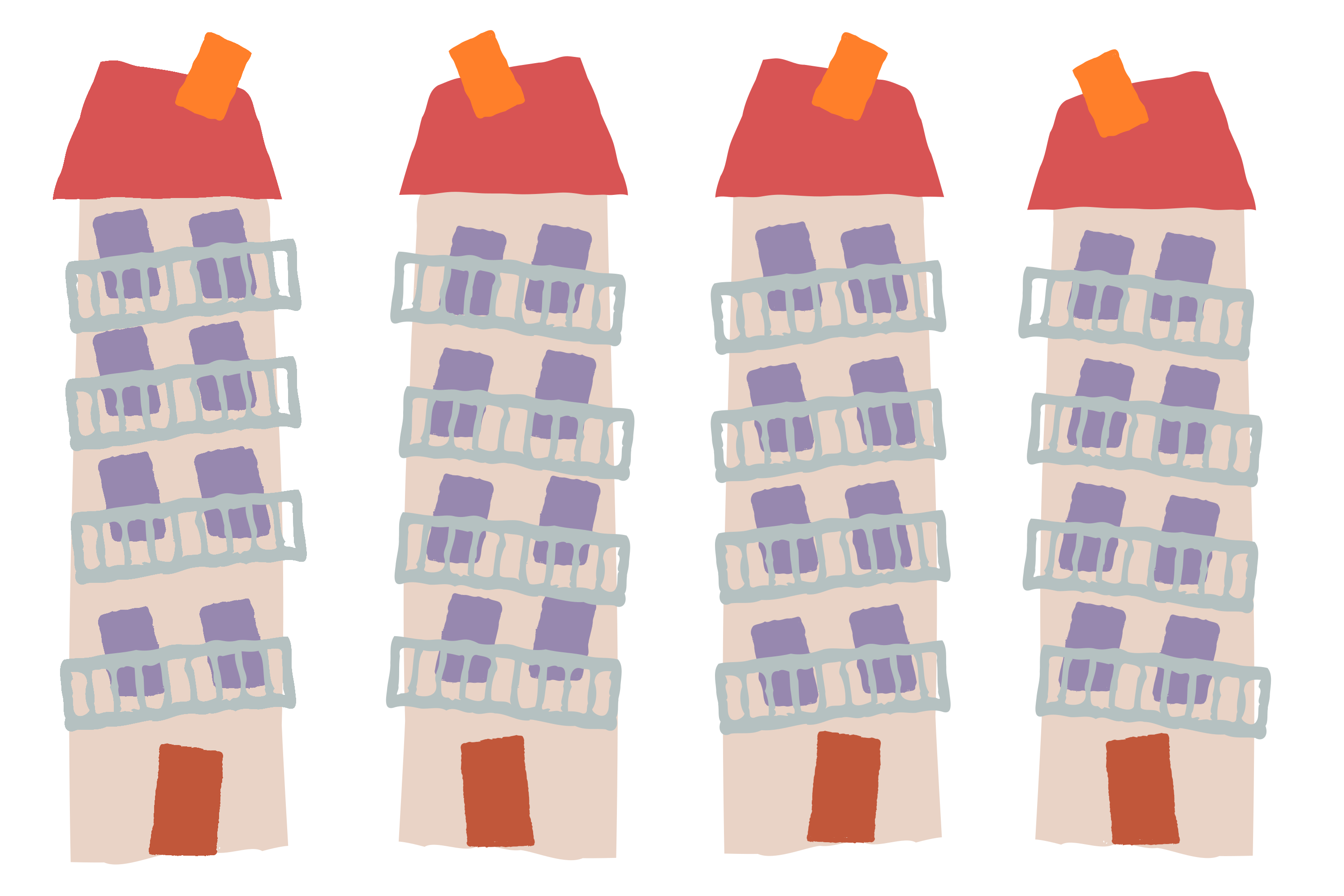 Tags: crooked world, house, purple, red, orange, white, gray, buildings crooked