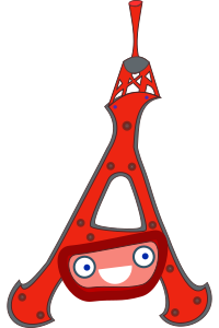 This features a unique and creative design of the Eiffel Tower, which has been transformed into an A-shaped structure. This imaginative interpretation of the famous landmark is adorned with a cartoon face, giving it a playful and whimsical appearance. The red color of the tower adds to its vibrant and eye-catching design. Overall, this artistic representation of the Eiffel Tower showcases an inventive approach to repurposing a well-known symbol while incorporating elements of fun and creativity.
