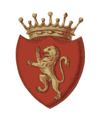 This features a red coat of arms with a lion on it. The lion is positioned in the center, and its paws are visible as well. Above the lion, there is a crown placed atop the shield. This design suggests that the coat of arms belongs to someone who holds significant importance or power. The use of a lion as the central figure on the coat of arms could indicate a connection to royalty or nobility. Overall, the image showcases an intricate and eye-catching symbol representing the owner's status and heritage.