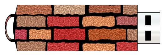 This features a USB thumb drive with a brick pattern on it. The brick design is made up of various shades of red, brown and orange, giving the appearance of a real brick wall. This unique design adds an interesting visual element to the thumb drive, making it stand out from more traditional designs.