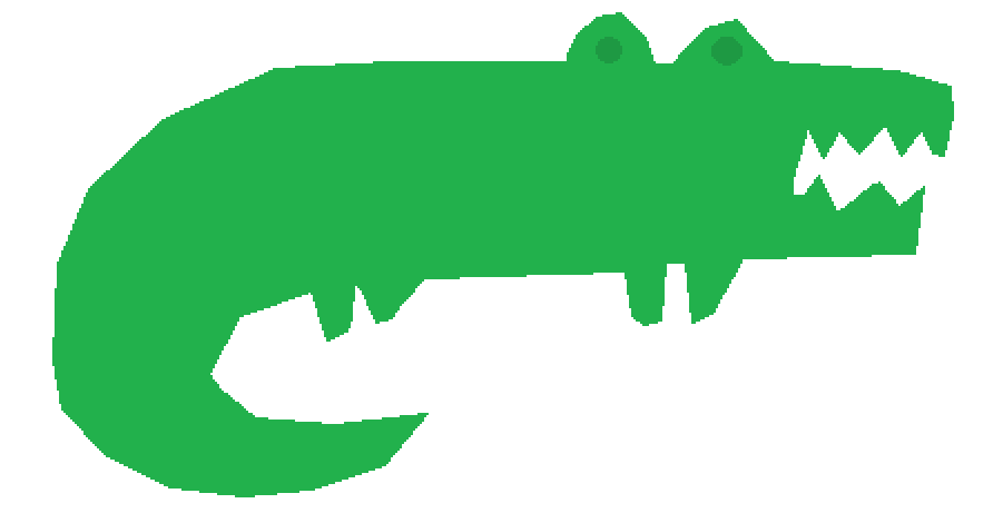This features a green cartoon crocodile with sharp teeth and a small tail. It is depicted in a close-up view, showcasing its distinctive features. The crocodile's mouth is open, giving the impression that it might be about to bite or attack something. This whimsical illustration of a green crocodile could be used for various purposes such as an advertisement, a children's book cover, or even as a decorative element in a room.