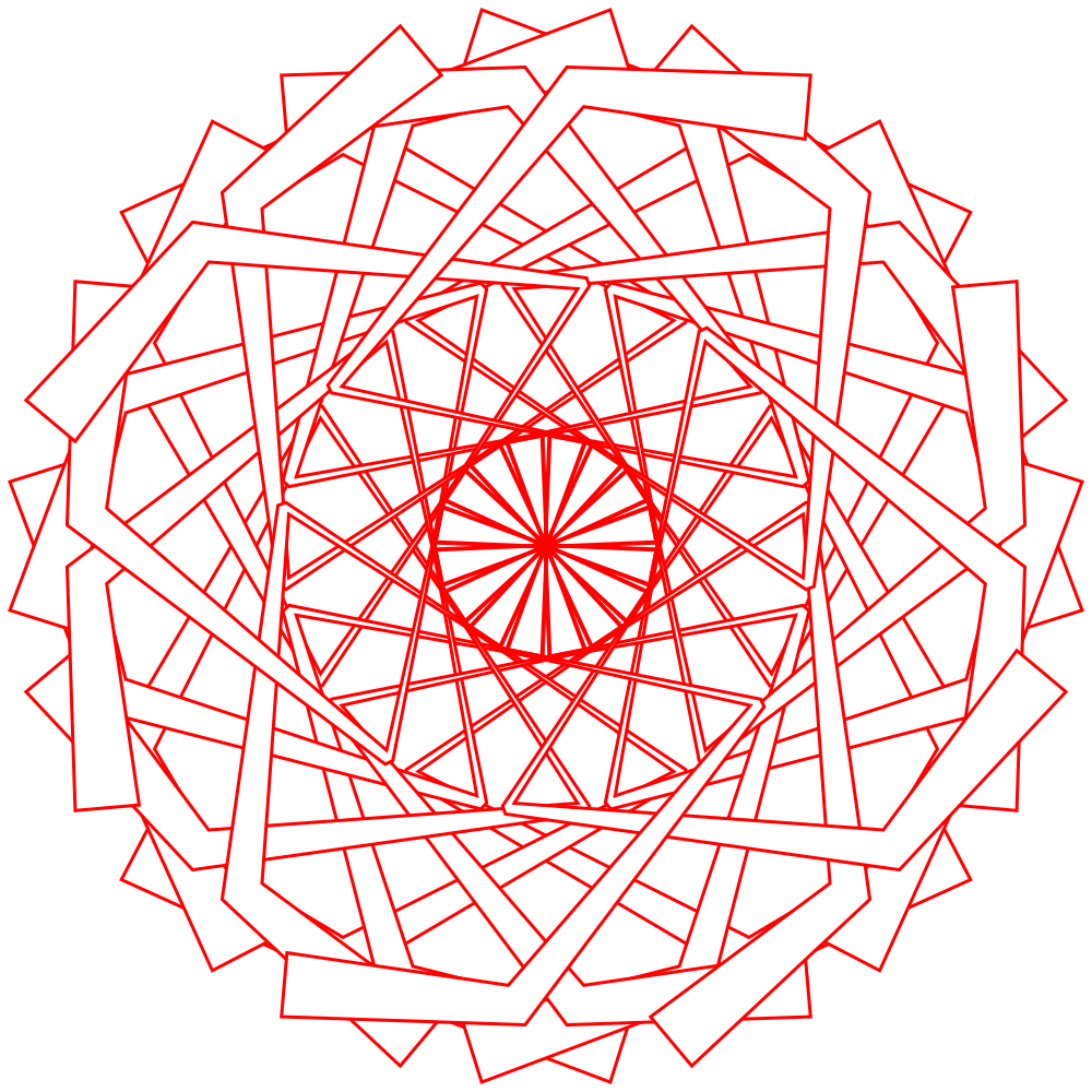 This features a large, intricate red design that resembles an abstract circle. This unique pattern is created by connecting multiple rectangular lines with red outlines. The lines are arranged in such a way that they form the shape of a circle, giving the impression of a complex and visually appealing artwork. The combination of the red color and the interconnected lines creates a striking visual effect, making it an interesting piece to observe.