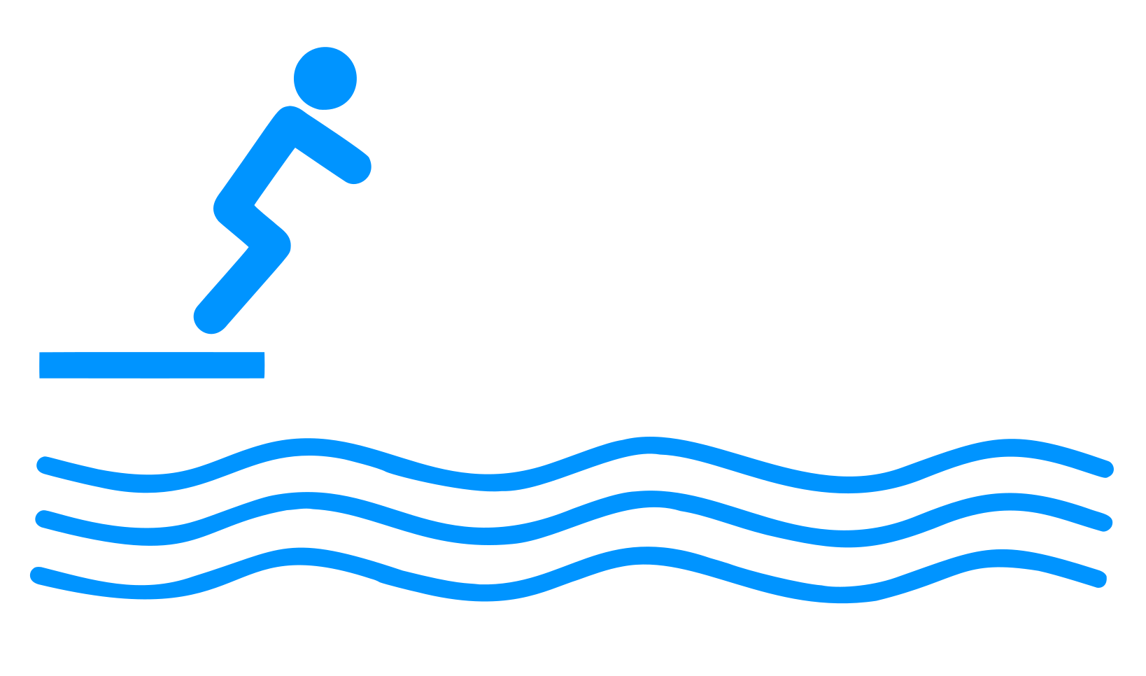 This features a blue and white swimming icon with an illustration of a man in the process of jumping into the water. This icon is likely used to represent swimming or water-related activities, such as surfing or diving. The man's position suggests that he is about to start swimming or engage in some form of aquatic sport. The overall color scheme of the image is predominantly blue, which adds a sense of calmness and tranquility to the scene.