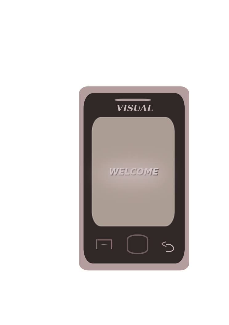 This features a cell phone with the screen displaying the word "Visual." The device is rectangular in shape and has three buttons at the bottom. The screen itself is gray, providing a contrasting background for the text displayed on it. This old-fashioned cell phone appears to be an interesting piece of technology from the past.
