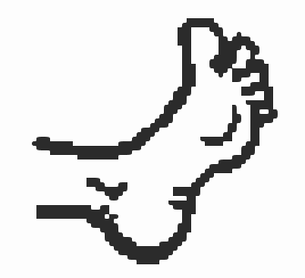 This features a black and white drawing of a foot with toes. The foot is shown in various positions, including pointing upwards and downwards. There are five distinct toes visible in the drawing, each one depicted at different angles. The overall composition of the drawing gives an impression of movement and action, as if the foot were in motion or performing some activity.