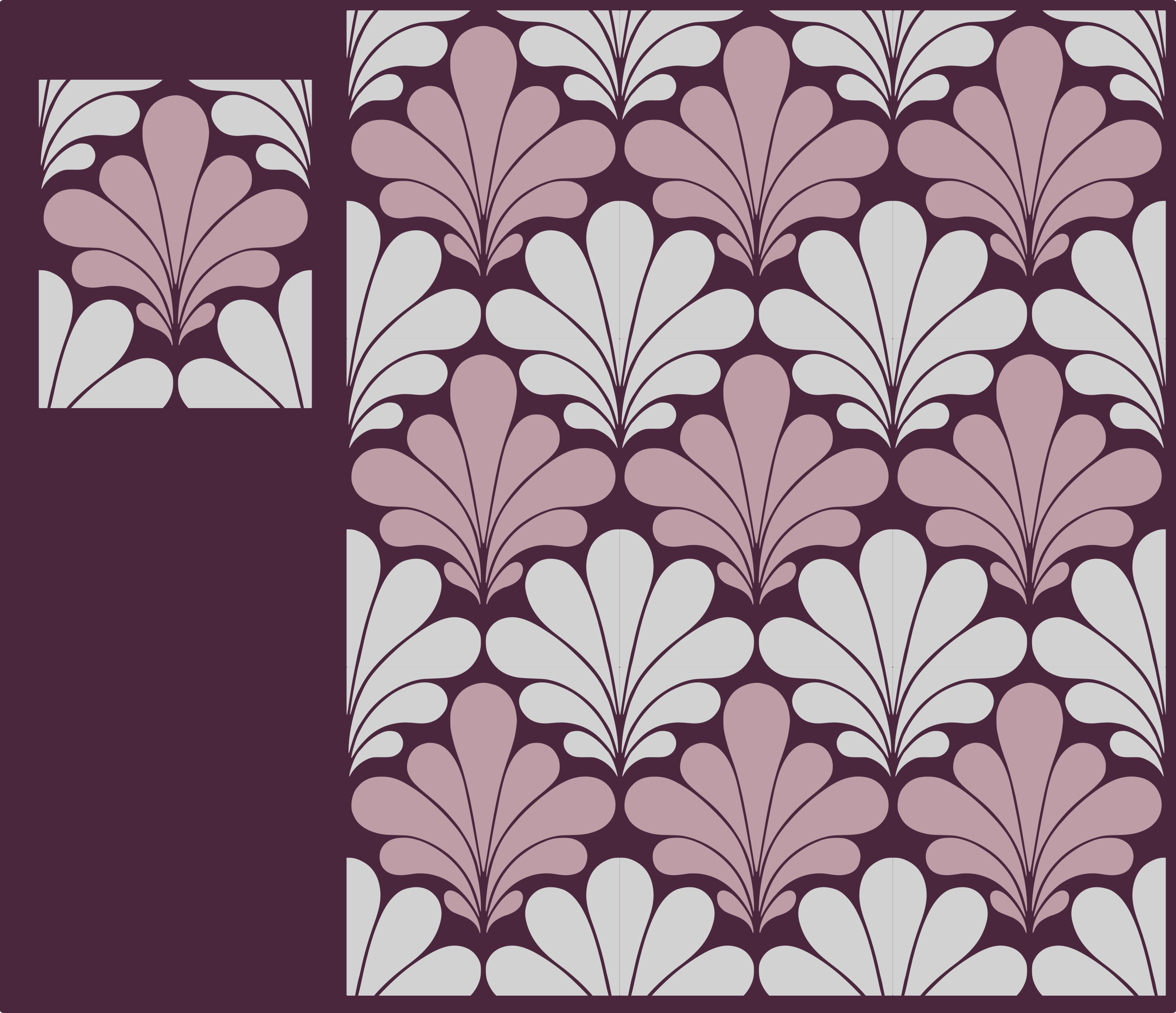 This features a patterned wallpaper with a pink and gray color scheme. The design consists of various leaf patterns, creating an elegant and sophisticated appearance. The leaves are arranged in rows that vary in color, adding depth and visual interest to the overall design. This wallpaper would be perfect for a living room or any space where you want to add a touch of nature-inspired beauty.