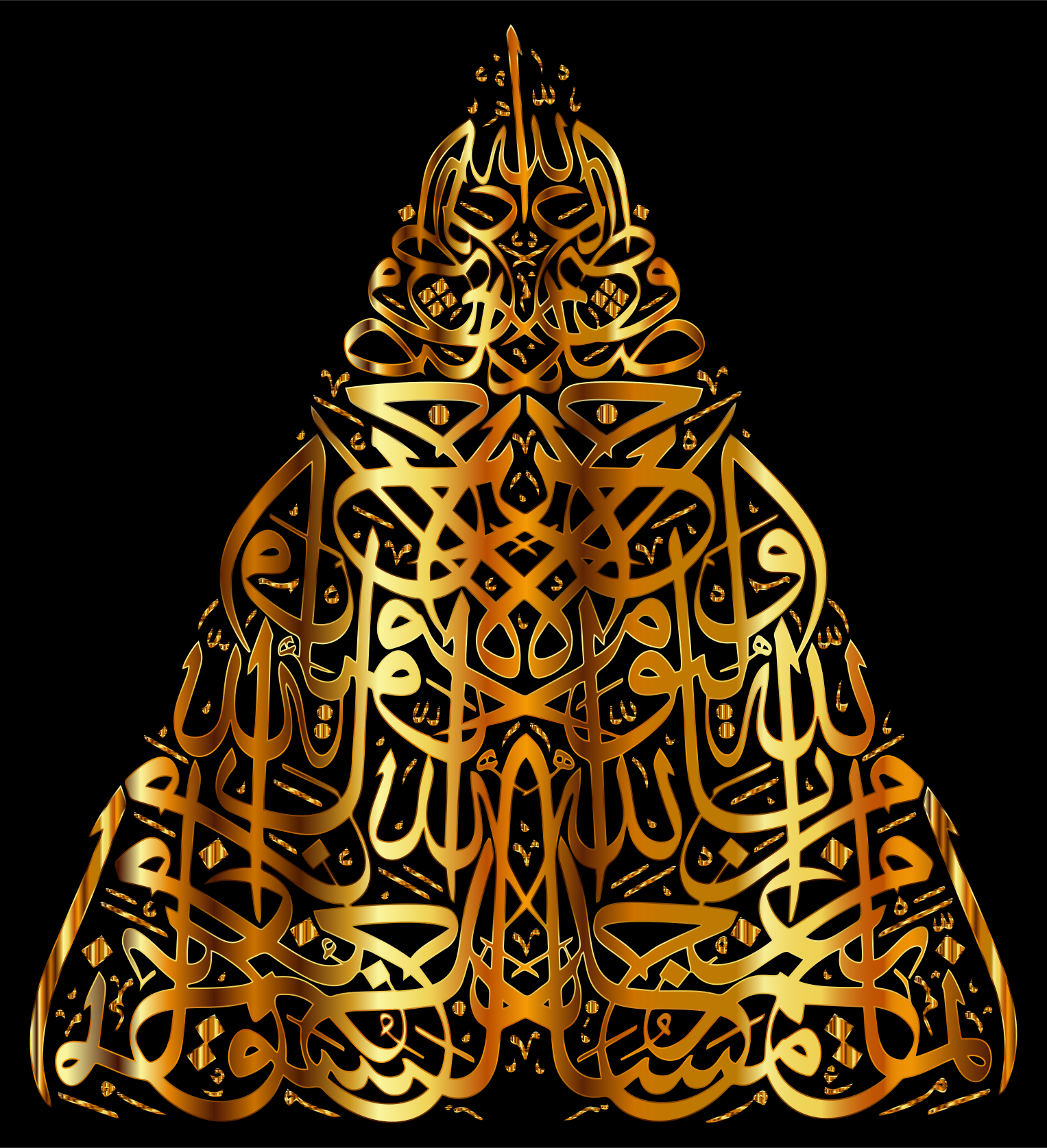 This features a beautifully designed Islamic artwork, showcasing intricate calligraphy in gold and black. The artwork is adorned with Arabic writing, which appears to be the word "Allah" written in various styles. The design is composed of multiple layers, creating an elegant and visually appealing pattern. This Islamic art piece serves as a striking decoration or a thoughtful gift for those who appreciate the beauty of calligraphy and Arabic culture.