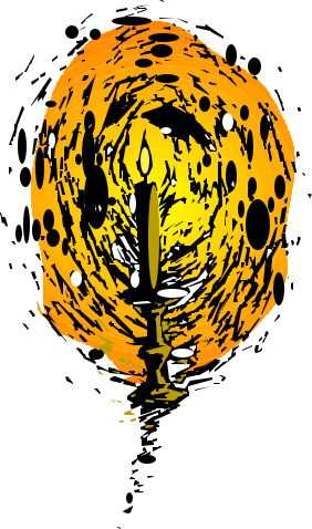 This features a yellow and orange colored balloon with a candle inside of it. The balloon is shaped like an umbrella, giving it a unique appearance. The candle appears to be lit, adding a warm glow to the scene. The overall atmosphere suggests that this could be a celebration or a special event where the balloon serves as a decorative element.