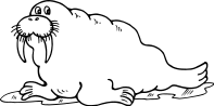 This features a cartoon walrus lying on its side, with its mouth open. It appears to be smiling and has a friendly demeanor. The walrus is positioned in the center of the scene, taking up most of the space. Its body is depicted as white, giving it a clean and polished appearance.