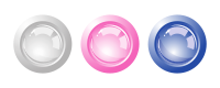 This features a close-up of three buttons, each with different colors. The button on the left is white, while the one in the middle is pink and the one on the right is blue. These buttons are placed next to each other, creating an appealing visual display. The contrasting colors make it easy for viewers to identify each button individually, adding a sense of organization and simplicity to the scene.