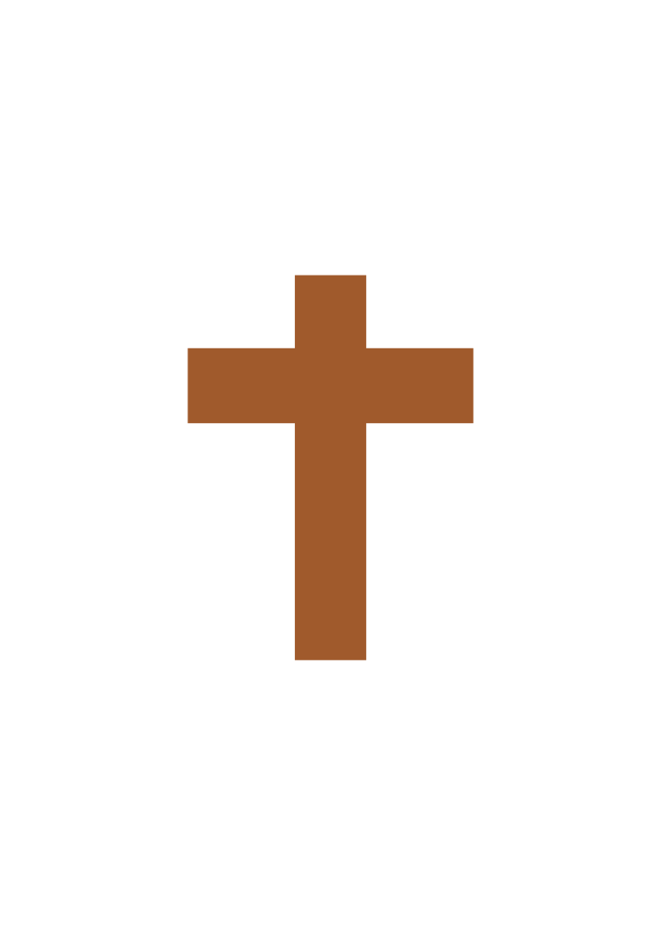 This features a large brown cross on a white background. The cross is prominently displayed, taking up most of the space in the picture. It appears to be an artistic representation or symbolic representation of Christianity. The contrast between the brown color of the cross and the white background creates a striking visual effect that draws attention to the subject matter.