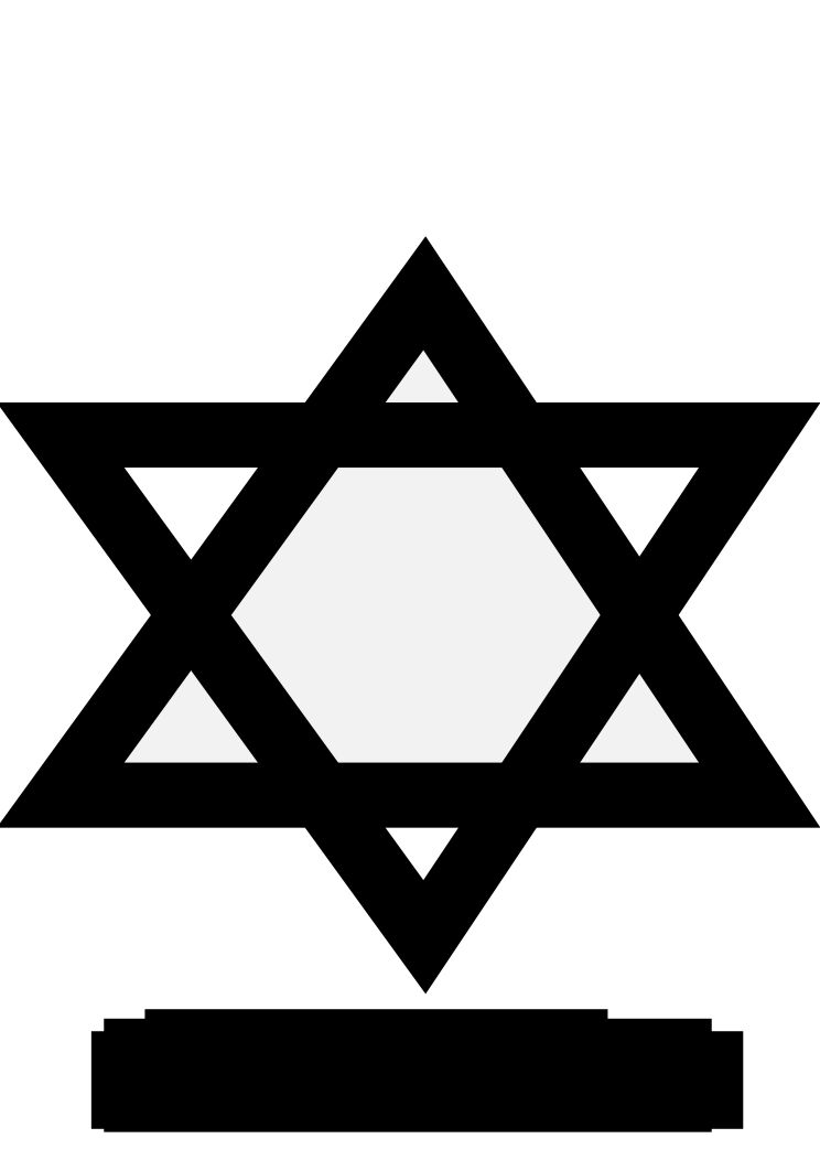 This features a black and white star of David, which is an emblem commonly associated with Judaism. The star has a slightly darker outline than the rest of the design, giving it a more prominent appearance. It appears to be part of a larger image or logo, possibly representing a religious or cultural symbol. The contrasting colors and intricate details make this star stand out as an important focal point in the composition.