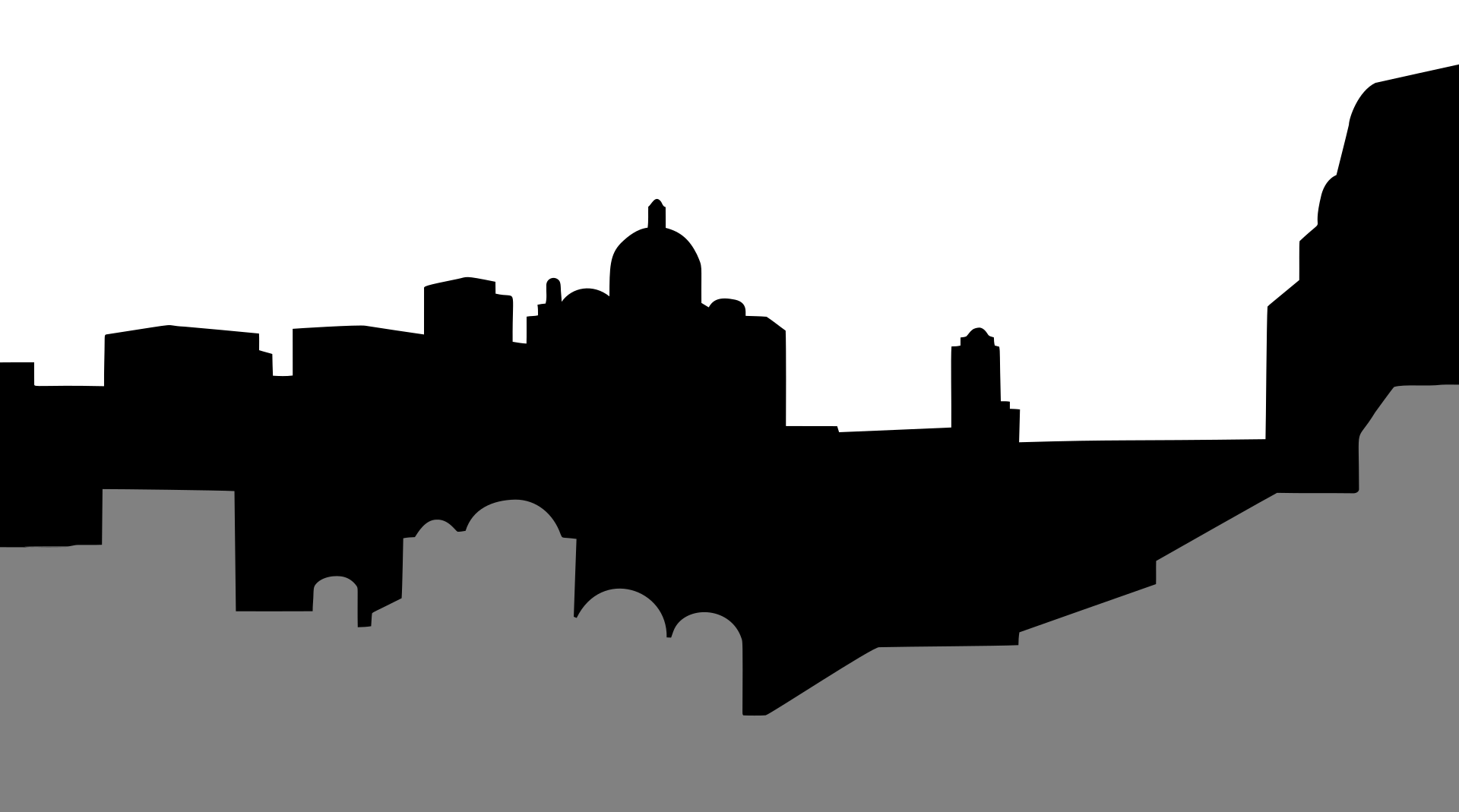 This features a cityscape with two silhouettes of buildings. One is black and the other is gray, creating an interesting contrast between the two. The buildings vary in size and shape, adding depth to the scene. In addition to these prominent structures, there are several smaller buildings scattered throughout the area, contributing to the overall urban atmosphere. The cityscape appears to be a blend of old and new architecture, with the black silhouette possibly representing an older building while the gray one could represent a more modern structure. Overall, this image captures the essence of a bustling city filled with various architectural styles.