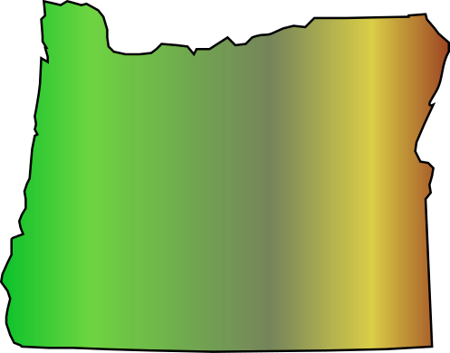 This features a colorful map of the state of Oregon. The map is divided into three distinct sections, each with its own unique colors: green, yellow, and orange. These colors create an eye-catching visual effect that highlights the different regions within the state. The map also includes a mountainous region in the upper left corner, adding to the overall beauty of the image.