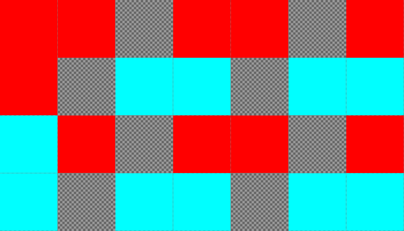 This features a red and blue checkerboard pattern with a gray background. The red squares are scattered throughout the scene, while the blue squares are more concentrated in the middle of the image. The overall composition creates an interesting visual effect that combines the vibrant colors of the checkerboard with the neutral tones of the gray background.