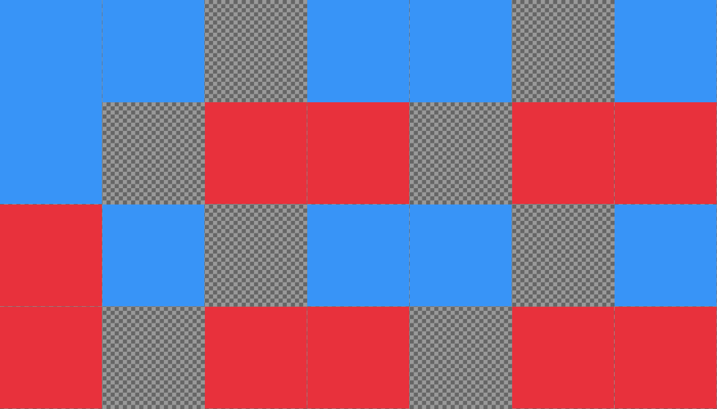 This features a large, multi-colored checkered pattern with red and blue squares. The red squares are scattered throughout the scene, while the blue squares can be found in various locations as well. The overall effect is a visually striking and vibrant display of colors that create an interesting and engaging visual experience for viewers.