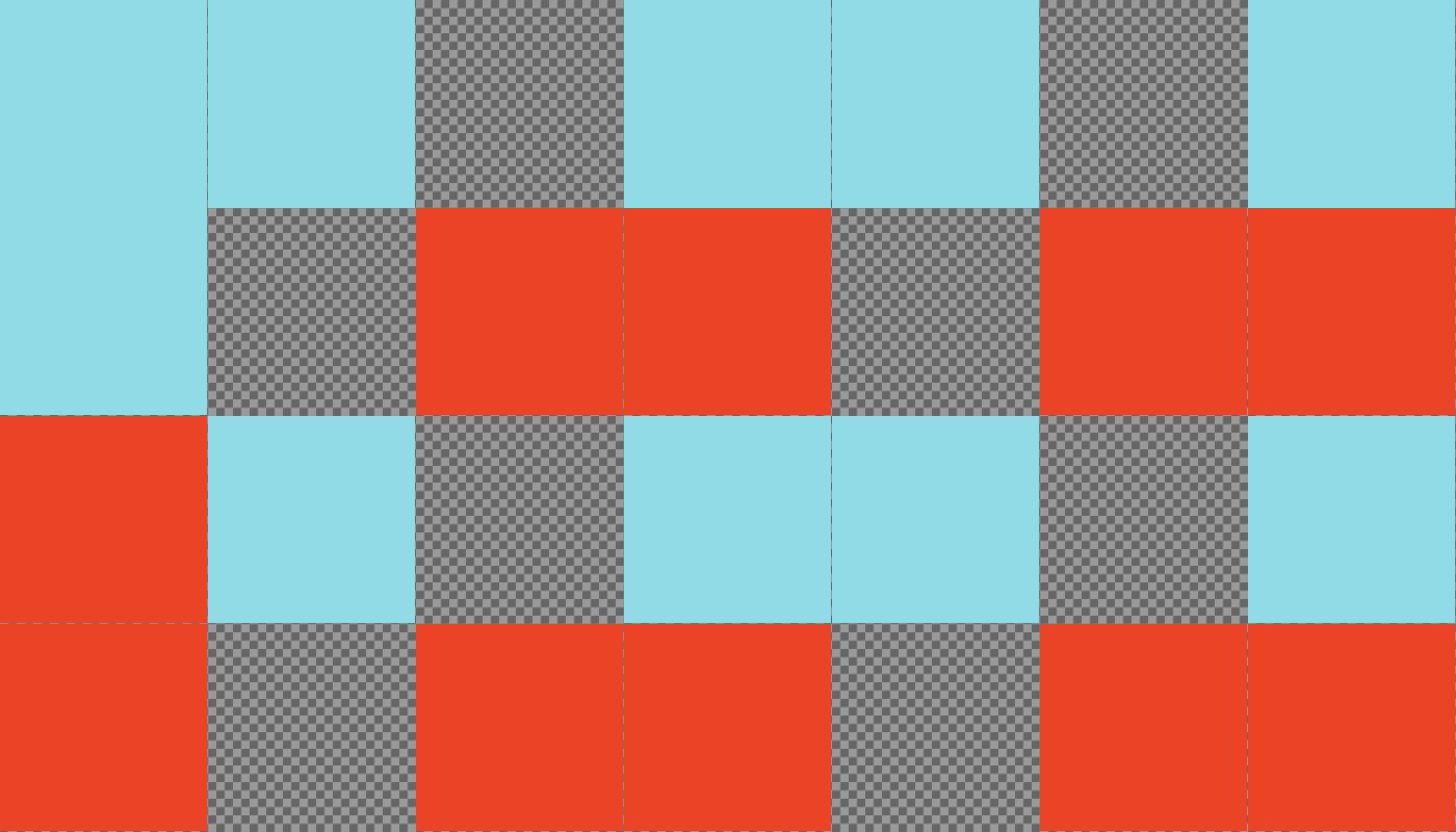 This features a red and blue checkered pattern with a gray background. The red squares are scattered throughout the scene, creating an interesting visual effect. There is also a blue square in the middle of the pattern, adding to the colorful composition. This design could be used for various purposes such as wallpaper or a graphic design element.