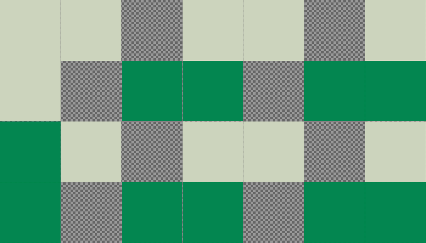 This is a close-up of a green and white checkered pattern. The green squares are arranged in a grid, with some squares being larger than others. The white squares within the pattern are smaller and more numerous, creating an interesting contrast between the two colors. This pattern could be used as a design element or for artistic purposes, such as in a poster or graphic design project.