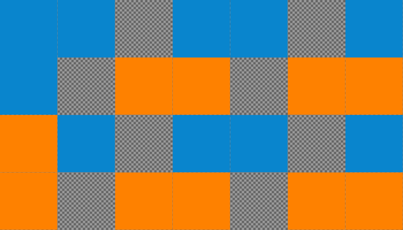 This is a blue and orange checkered pattern with a gray background. The colors are vibrant, making the design stand out. The blue squares have an orange border while the orange squares have a blue border. This creates a visually appealing contrast between the two colors. The pattern appears to be a part of a larger image or design, possibly used for decoration or as a background element in a digital artwork.