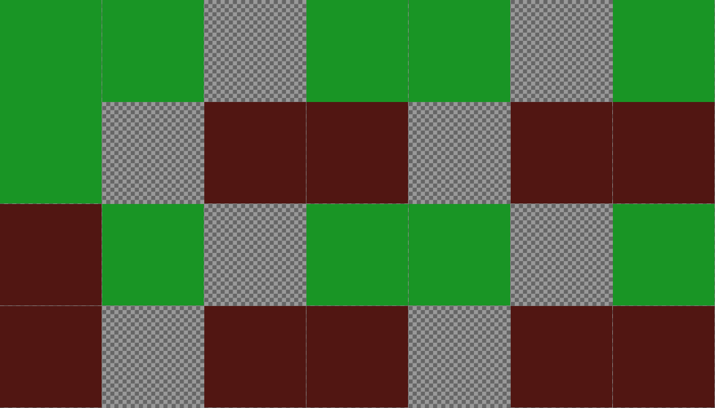 This is a close-up of a green and brown checkered pattern. The pattern consists of squares with different shades of green, creating an interesting visual effect. The squares are arranged in various orientations, giving the impression that they are part of a larger design or artwork. This unique pattern could be used as a background for various purposes such as digital art, graphic design, or even wallpaper.