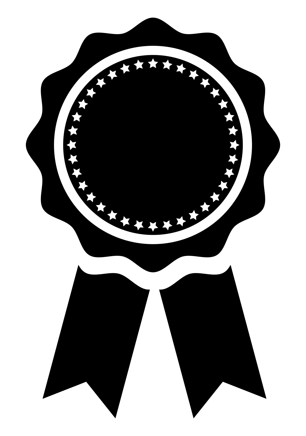 This features a black and white award ribbon with a circular shape. It is adorned with two ribbons at the bottom, adding to its visual appeal. The ribbon appears to be made of fabric, giving it a more authentic look. This award ribbon could be used for various purposes such as recognizing achievements or accomplishments in different fields. Its simple yet elegant design makes it suitable for use in both formal and informal settings.