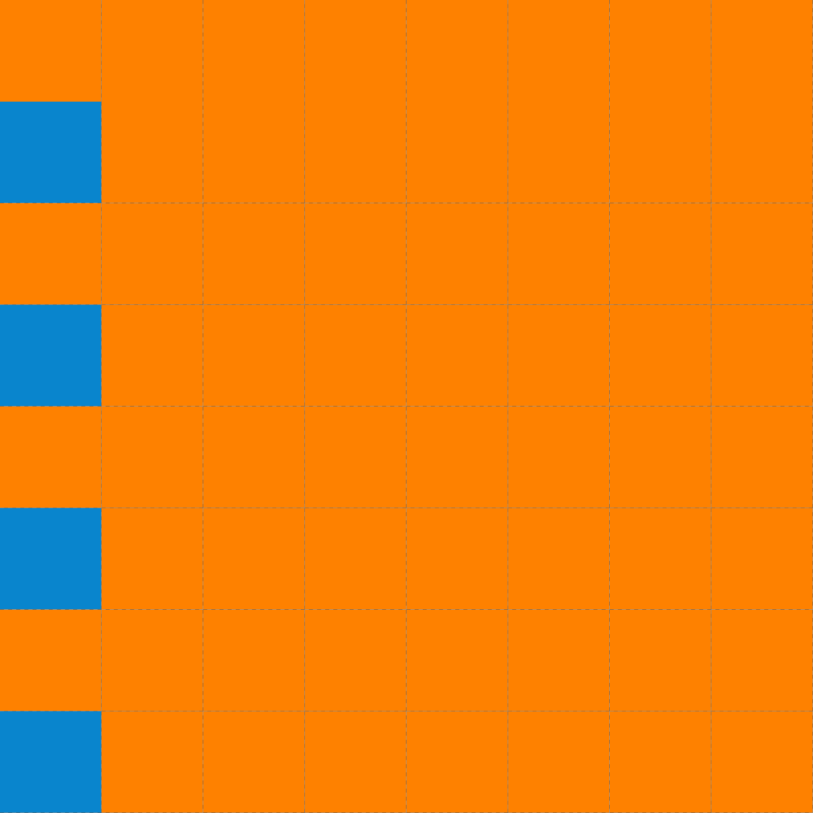 This is a large, bright orange square with a blue border. It has a vibrant and bold appearance, making it an eye-catching design element. The orange background creates a striking contrast against the blue border, drawing attention to the center of the image. This color combination gives the impression of a retro or psychedelic style, reminiscent of sixties poster artwork.
