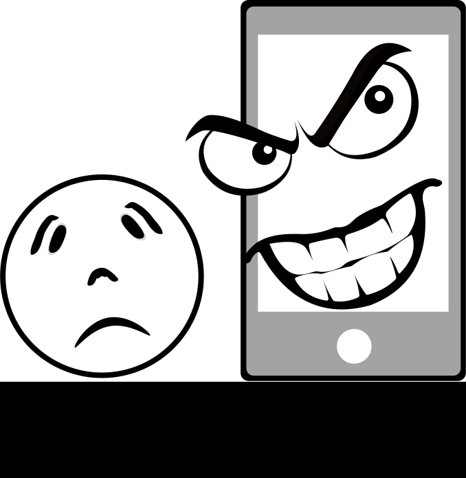 This features a cell phone with an angry face, giving it a mean and evil appearance. It is positioned next to a sad emoji, which contrasts the aggressive expression of the phone. The emoji appears to be looking down in disappointment or discontent, while the phone's face seems to be glaring at something with an intense expression. This combination creates a visually striking and humorous scene that captures the viewer's attention.