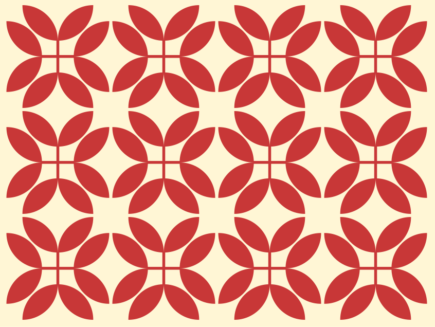 This features a pattern of red flowers and stars arranged in an intricate design. There are several clusters of flowers, each with varying shapes and sizes, creating a visually appealing composition. The background is a light yellow color, which contrasts nicely with the vibrant red hue of the flowers. This artistic arrangement showcases the beauty of nature while also demonstrating an eye for detail in design.