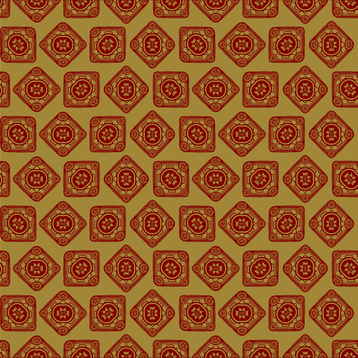 This features a patterned design made up of various shapes, including circles and squares. These shapes are arranged in a way that creates an intricate and visually appealing pattern. The colors used for this design include shades of brown and orange, giving the pattern a warm and earthy appearance. This seamless pattern can be used as a decorative element or even as a background for other designs. It is reminiscent of a tile pattern, which adds to its versatility and appeal.