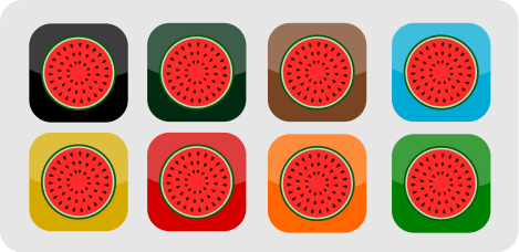 This features a collection of eight watermelon icons, each with a different background color. These icons are displayed in small squares with round edges, creating an appealing and organized presentation. The various colors of the watermelons add visual interest to the overall design, making it an attractive display for viewers.
