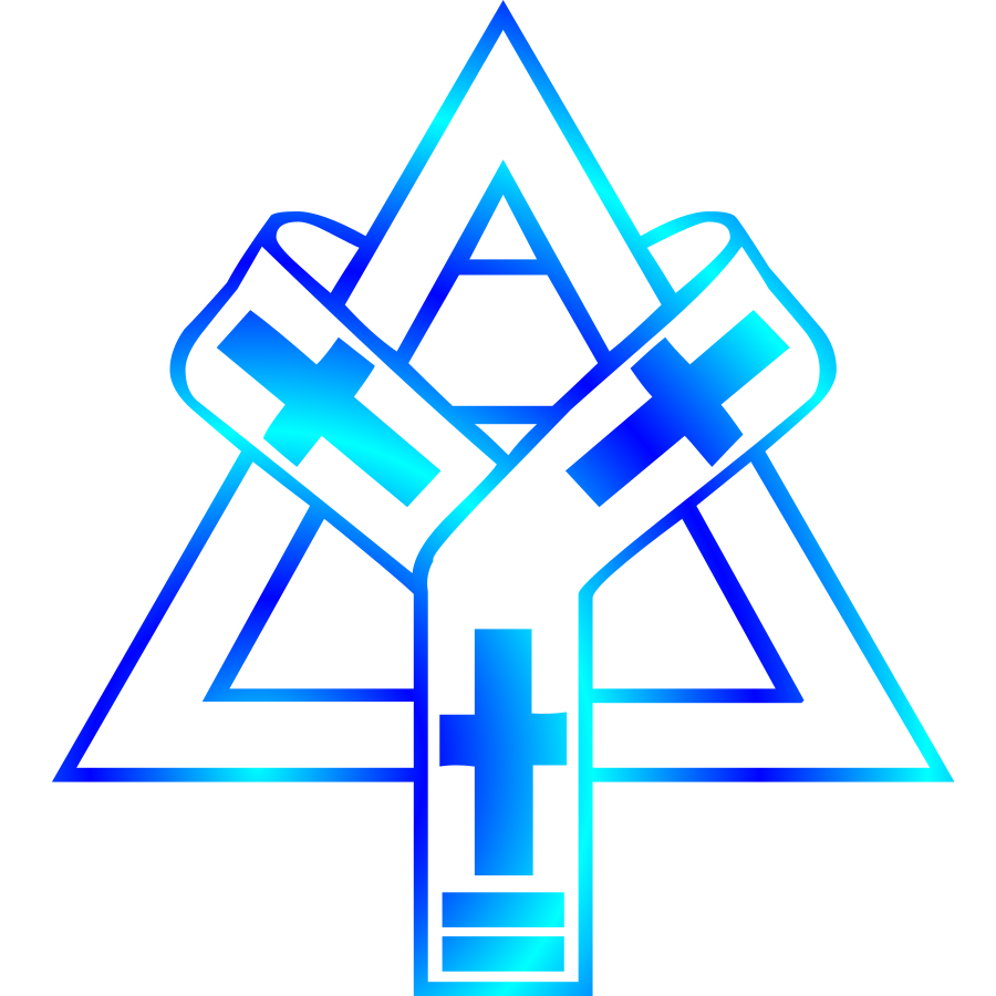 This features a blue and white logo with an X shape in the center. This design is reminiscent of a cross, which is a symbol often associated with Christianity. The logo appears to be made up of several smaller symbols, including a circle and two triangles. These elements are arranged around the central X, creating a visually appealing and unique design.
