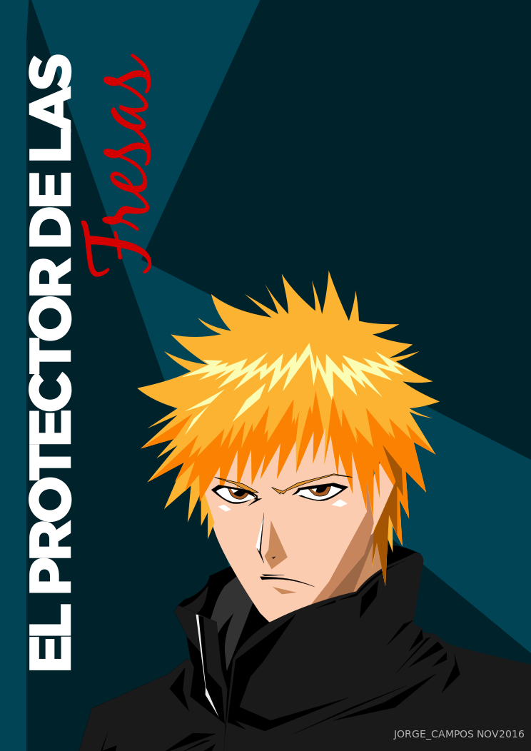 This features a man with bright orange hair, wearing a black coat and looking angry. He is the main focus of the picture, which has been drawn in a colorful style. The drawing also includes some text on it, possibly providing information about the character or the context of the scene.