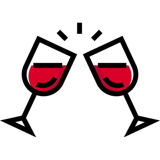 This features two wine glasses filled with red wine, each placed on a stem. They are both leaning inward slightly towards one another, creating an impression of being used to cheers. This iconic symbol is often associated with celebrations and social gatherings where people come together to enjoy good company and drinks. The image captures the essence of this tradition by showcasing two wine glasses filled with red wine, ready for a toast or a shared moment of joy.