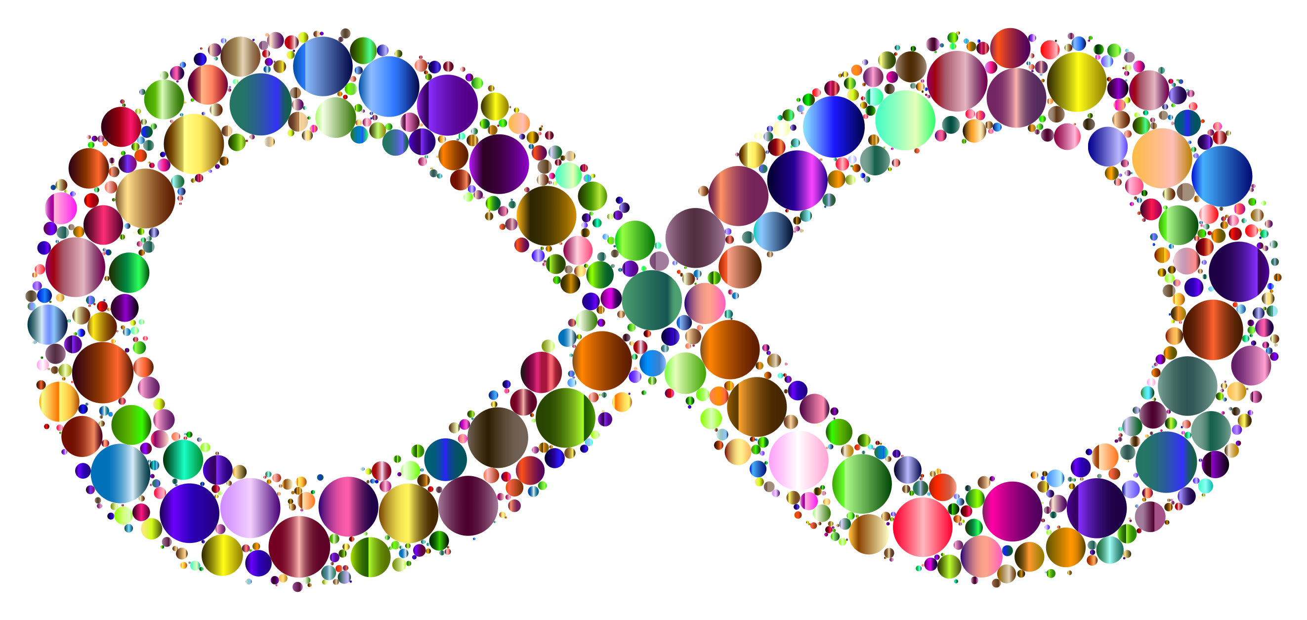 This features a unique and creative design of an infinity sign made out of small circles. These circles are scattered all over the sign, varying in size and color to create a visually appealing pattern. The circles are placed at different angles and positions on the sign, giving it a dynamic and eye-catching appearance. This artistic representation of the concept of infinity is both intriguing and thought-provoking, making it an interesting piece for viewers to appreciate.
