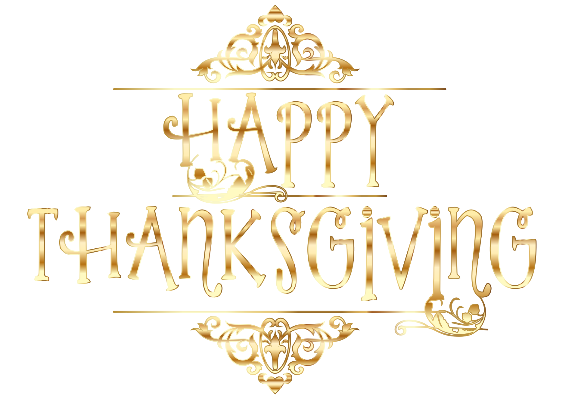 This features a beautifully designed sign that reads "Happy Thanksgiving." The sign is adorned with gold lettering and intricate decorations, giving it an elegant appearance. The background of the sign is white, which allows the gold text to stand out prominently. This festive design would be perfect for use during the holiday season or as a decorative piece in one's home or office.